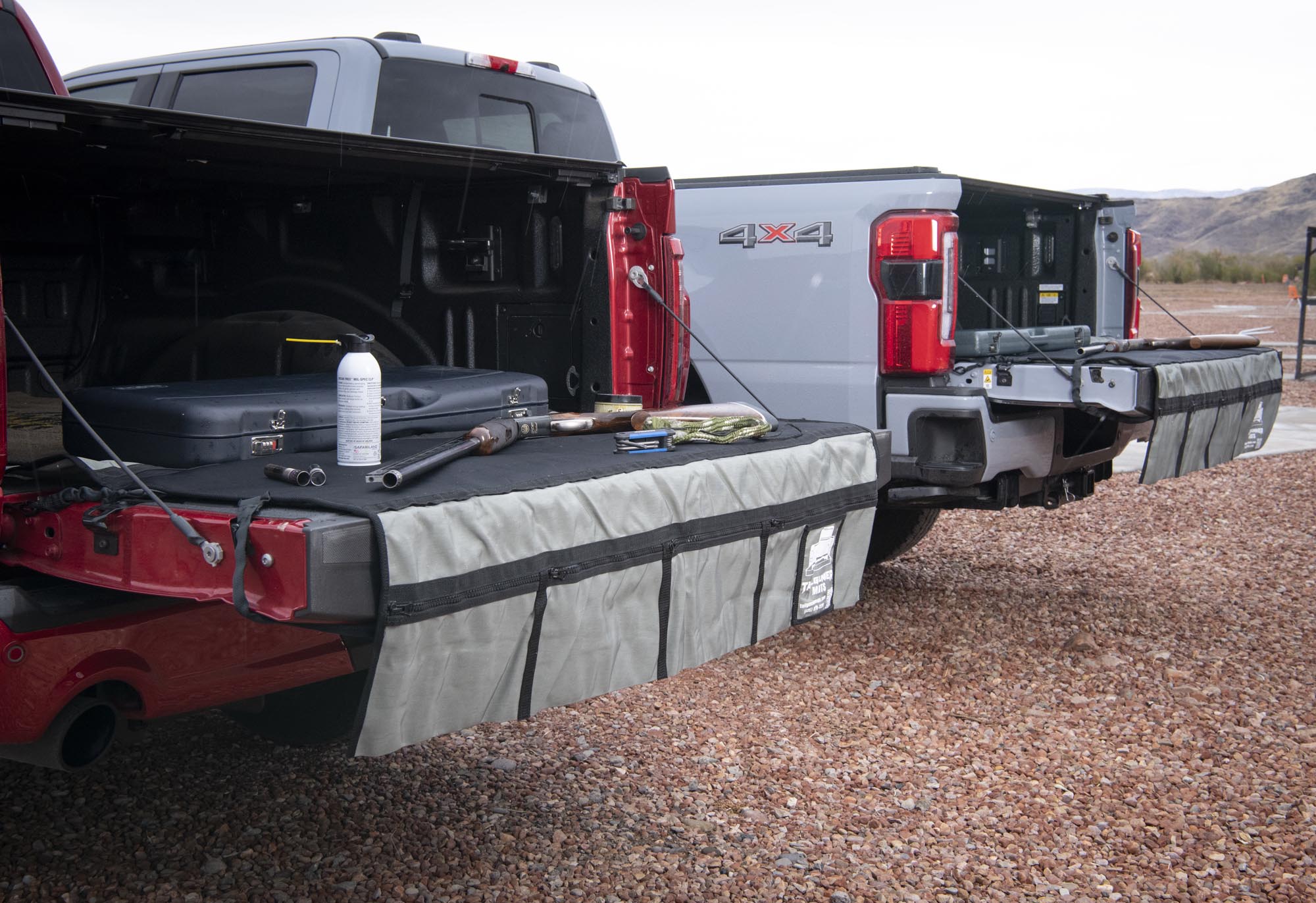 Tailgunner Mats are the only tailgate mats built for competitive shooters and high-end firearms. Designed to protect your guns, streamline your workflow, and keep every tool in reach.